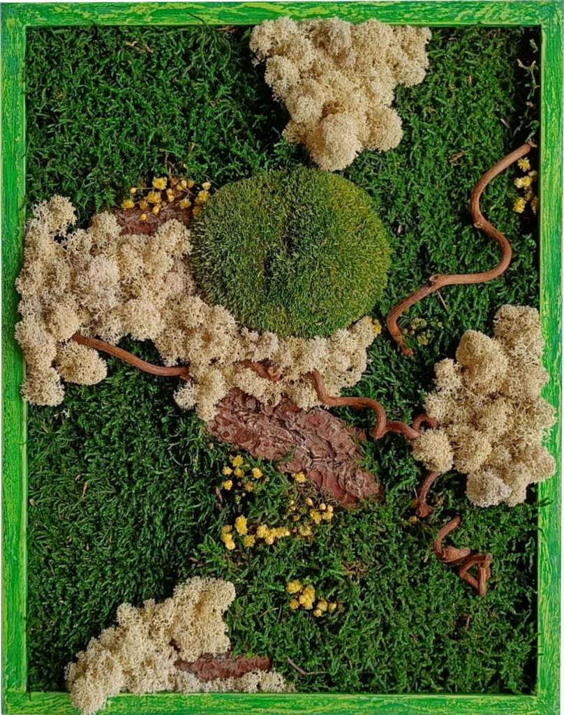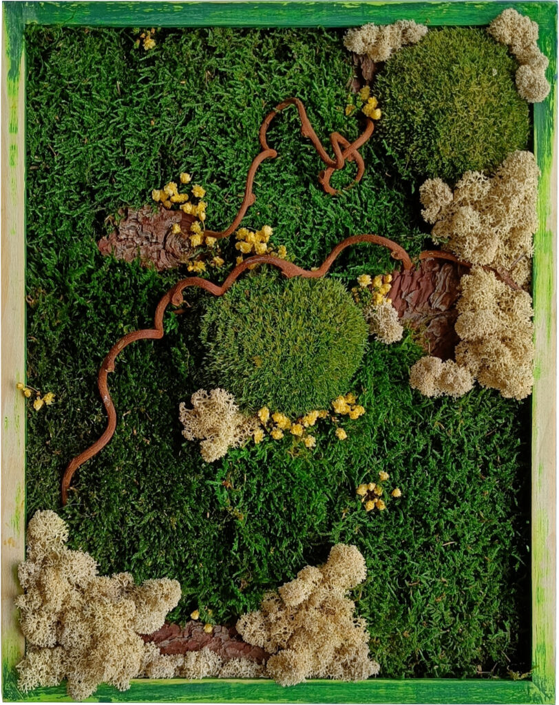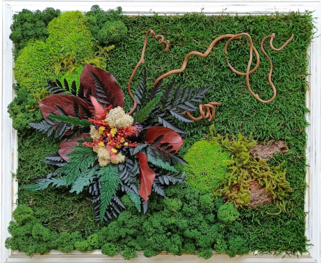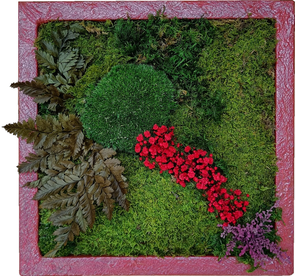 Le piante (principalmente muschi, licheni, fiori e foglie) restano la, immobili dentro una cornice affissa nelle parete della tua casa, negozio, ufficio, sala.